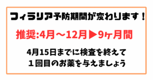 推奨期間は1ヶ月早まり、4月〜12月。初回を4月15日までに与えましょう。